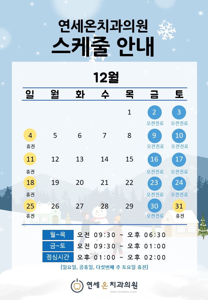 ¿¬¼¼¿ÂÄ¡°ú 12¿ù Áø·áÀÏÁ¤ÀÔ´Ï´Ù.