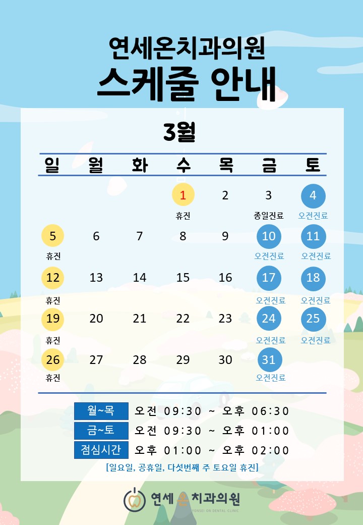 ¿¬¼¼¿ÂÄ¡°ú 3¿ù Áø·áÀÏÁ¤ÀÔ´Ï´Ù.