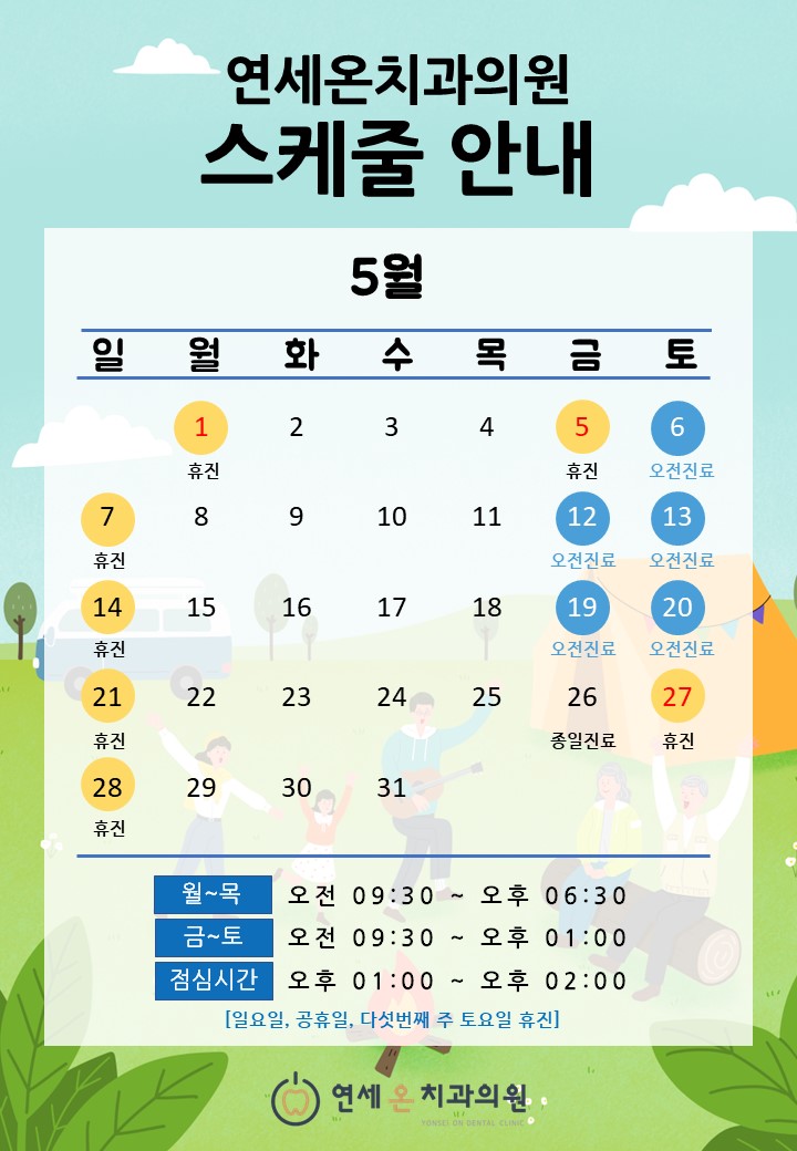 ¿¬¼¼¿ÂÄ¡°ú 5¿ù Áø·áÀÏÁ¤ÀÔ´Ï´Ù.
