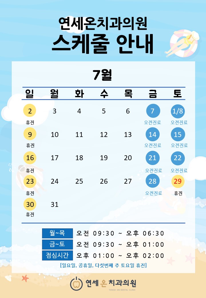 ¿¬¼¼¿ÂÄ¡°ú 7¿ù Áø·áÀÏÁ¤ÀÔ´Ï´Ù.