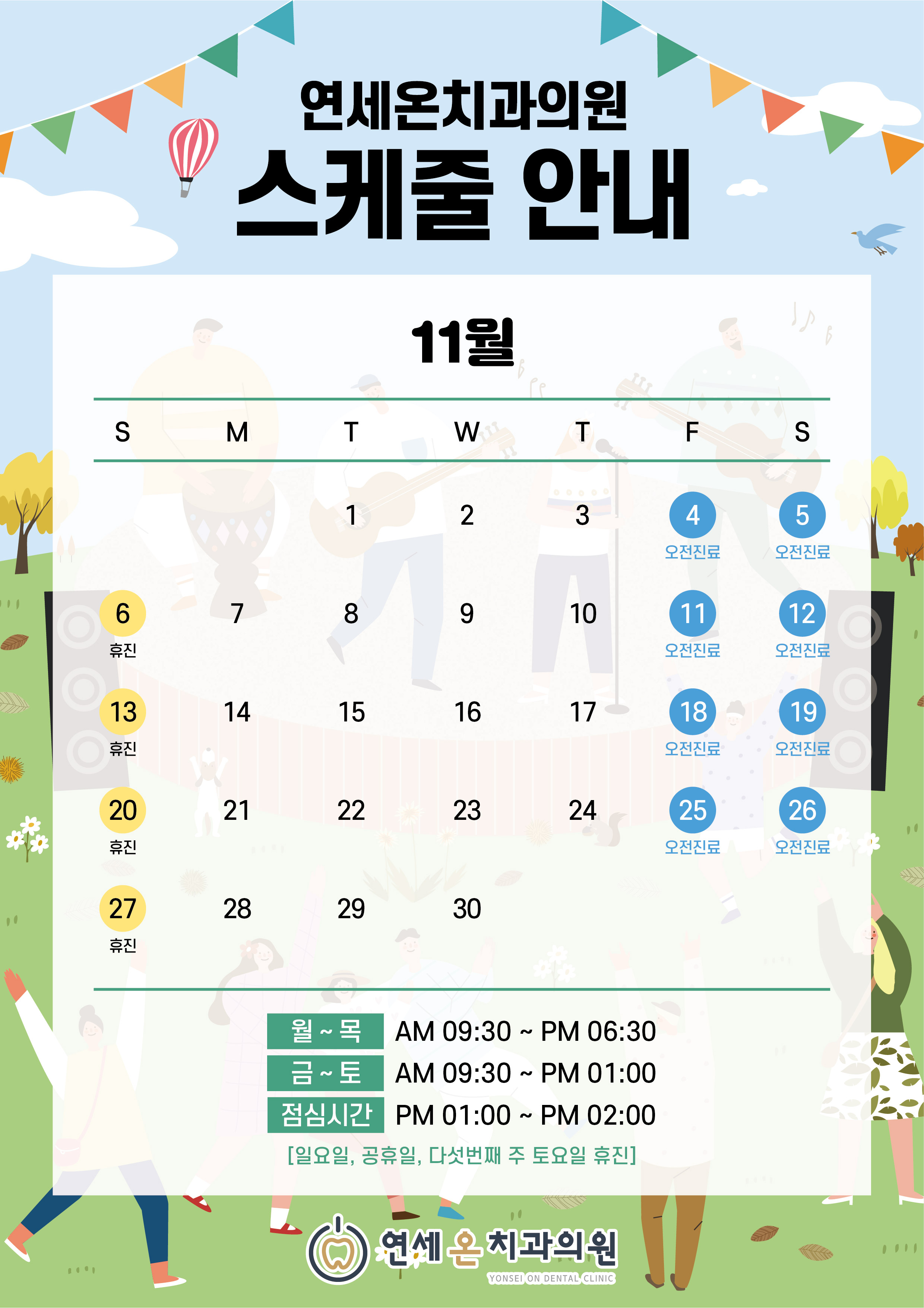 ¿¬¼¼¿ÂÄ¡°ú 11¿ù Áø·áÀÏÁ¤ÀÔ´Ï´Ù.